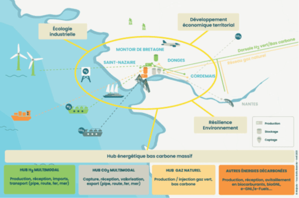 En effet le projet de ZIBaC est centré autour de la mise en place d’un hub énergétique décarboné autour St-Nazaire. On peut calculer les ordres de grandeurs pour se faire une idée des enjeux liés à ces nouveaux vecteurs énergétiques décarbonés sur lesquels le port et les industriels de l’estuaire souhaitent s’appuyer.